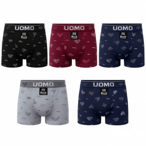 Ανδρικό μπόξερ από ελαστικό ύφασμα με σχέδια σε συσκευασία 5 τεμαχίων.