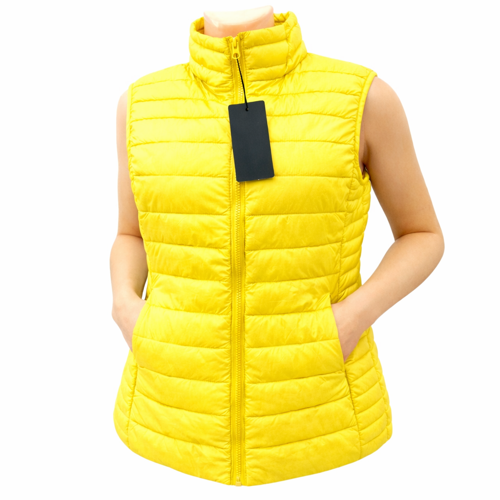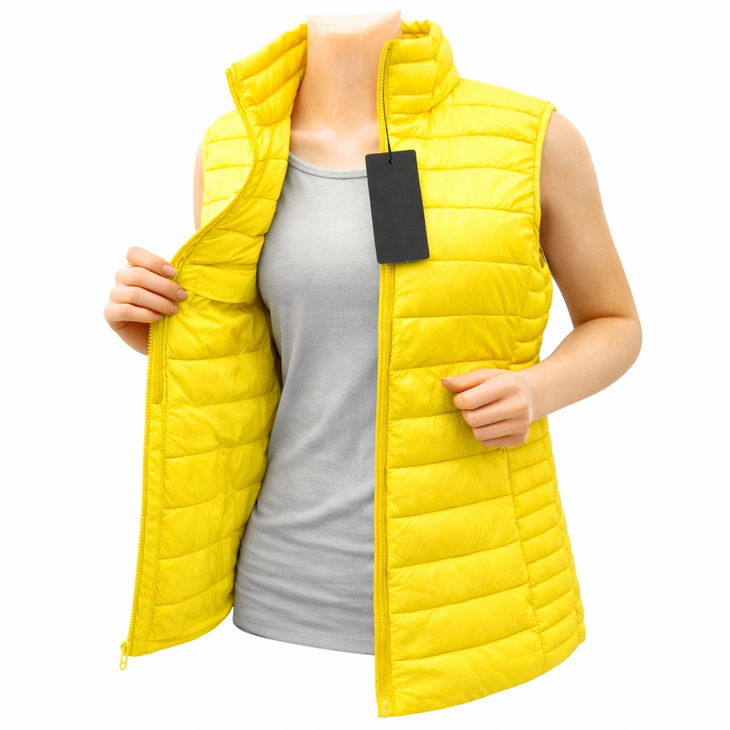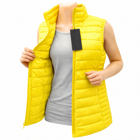 Γυναικείο Καπιτονέ γιλέκο , με φερμουάρ, και όρθιο γιακά και τσέπες με φερμουάρ.