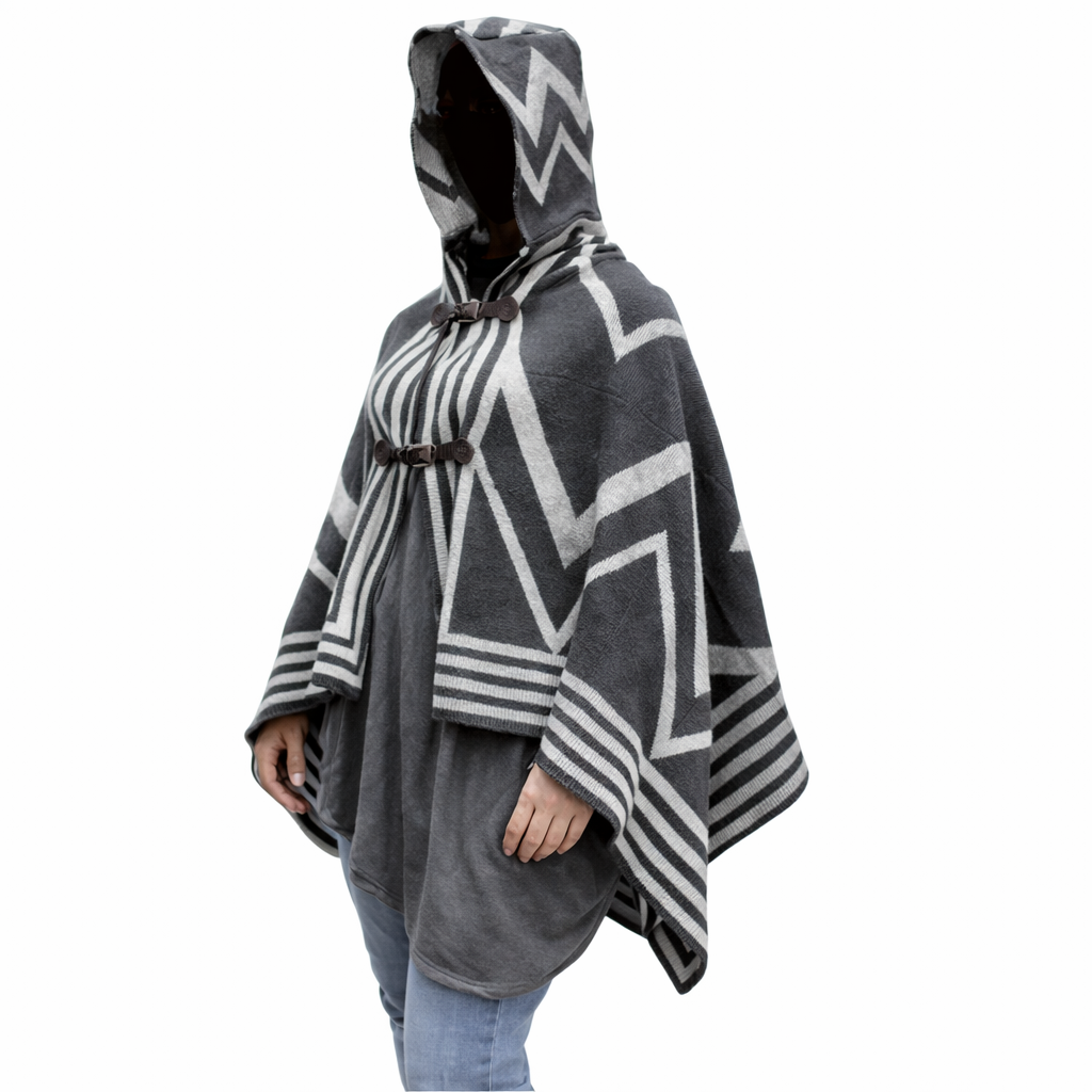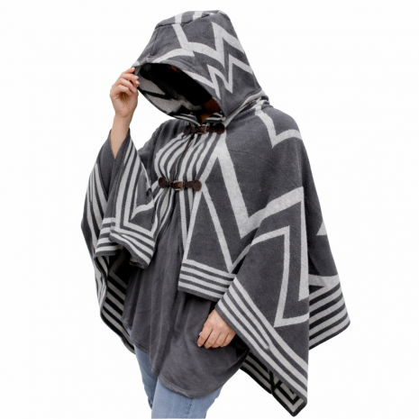 Μοντέρνο πόντσο με κουκούλα και πόρπες - One Size.