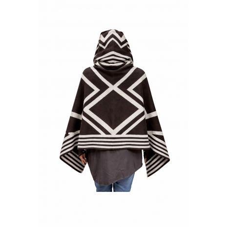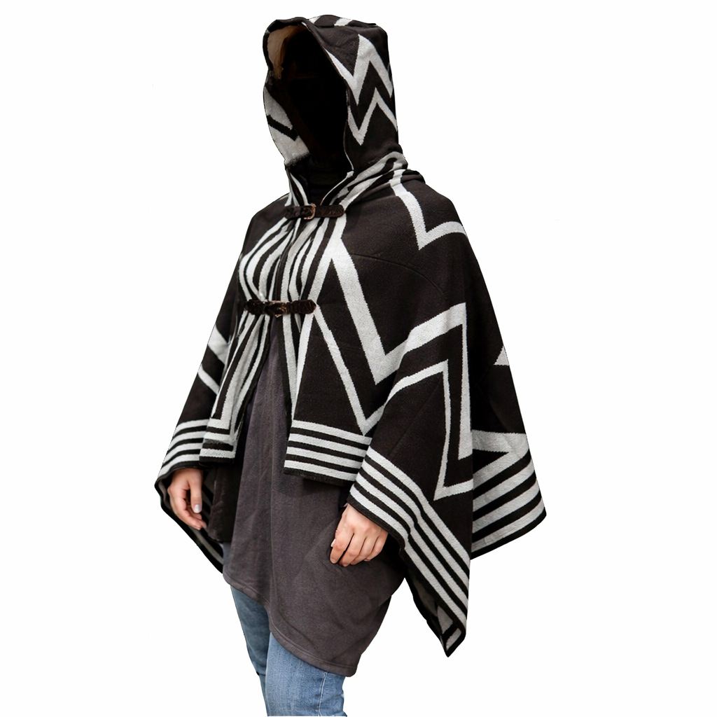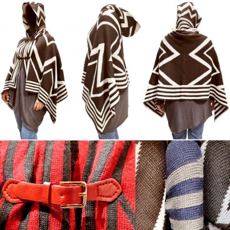 Μοντέρνο πόντσο με κουκούλα και πόρπες - One Size.