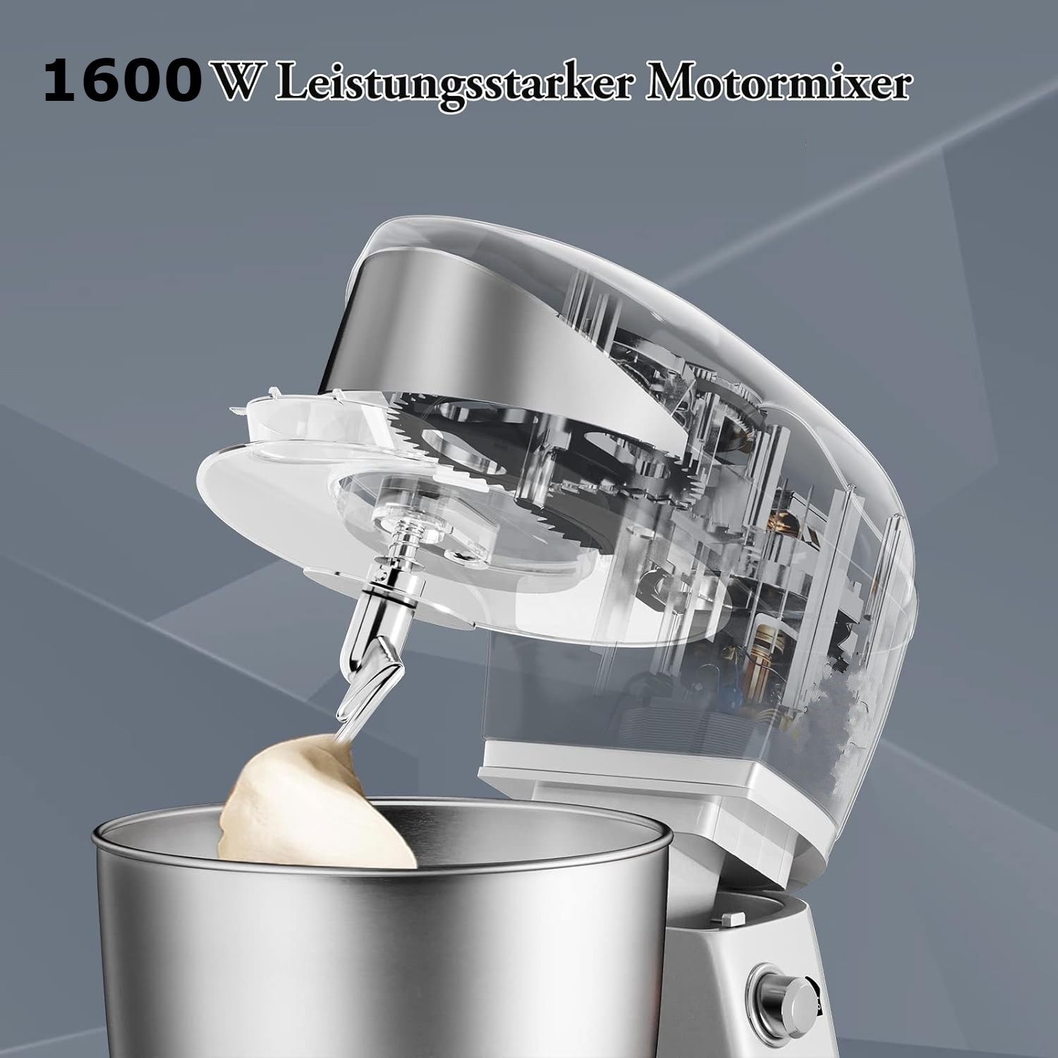 Royalty Line, Επιτραπέζιο μίξερ - Κουζινομηχανή με κάδο 6lt από ανοξείδωτο ατσάλι RL-PKM1600 Silver    Δείτε το Video
