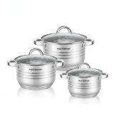 Σετ κατσαρόλες 18 - 20 - 22 cm, από Ανοξείδωτο Ατσάλι,με πυρίμαχα καπάκια 6 τμχ FR-1152