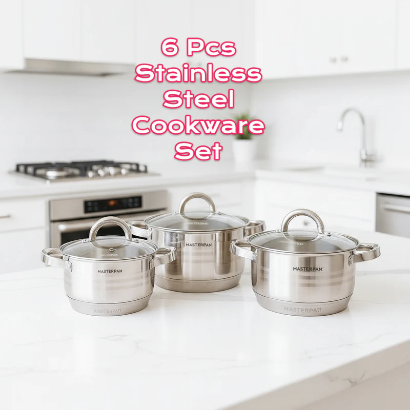 Αναβαθμίστε την καθημερινή σας μαγειρική με αυτό το premium σετ ανοξείδωτων σκευών 6 τεμαχίων, σχεδιασμένο για όσους αγαπούν το καλό φαγητό και απαιτούν επαγγελματικό αποτέλεσμα στην κουζίνα τους.