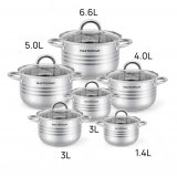Συνολικά το σετ “ PREMIUM QUALITY IN ONE SET” της MASTERPAN περιλαμβάνει: 5 κατσαρόλες και 1 τηγάνι με πυρίμαχα καπάκια και βαλβίδα ασφαλείας.