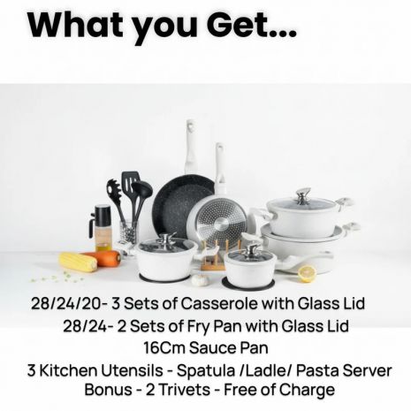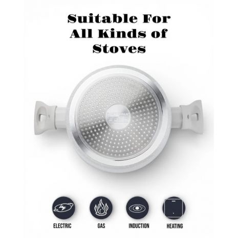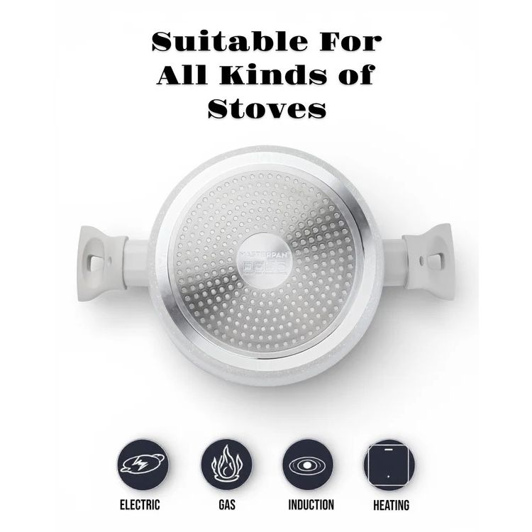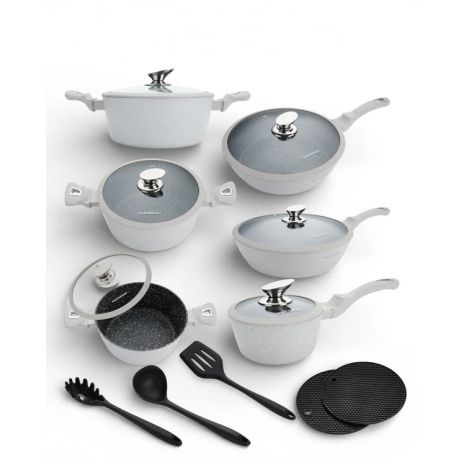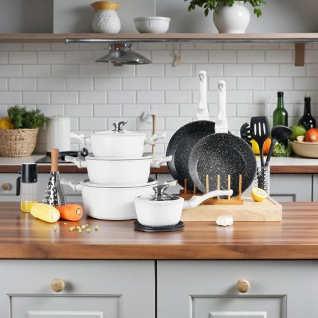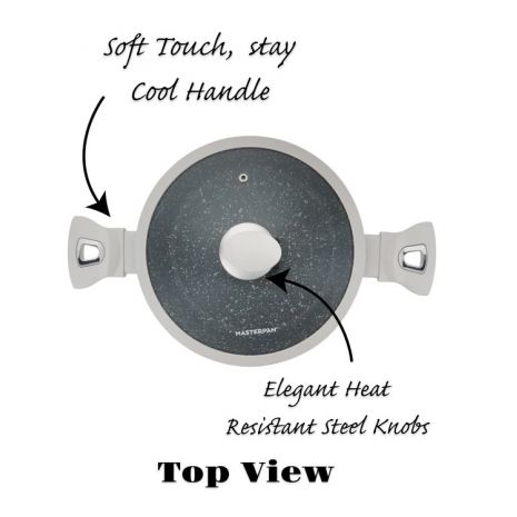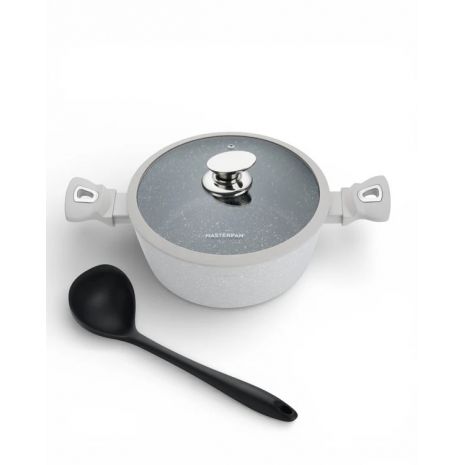 MasterPan, Σετ Μαγειρικά Σκεύη 15 τμχ με Τριπλή Μαρμάρινη Επίστρωση και πάτο Turbo Induction, White line MP 7004