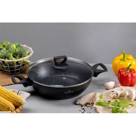 Κατσαρόλα Ρηχή 20cm Αντικολλητική με Επίστρωση Μαρμάρου & Γυάλινο Καπάκι Edenberg, EB-7462