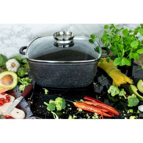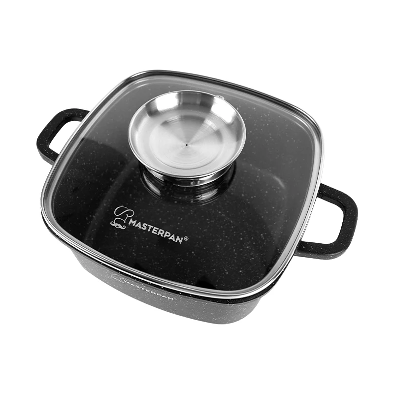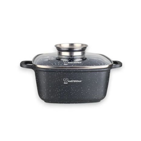 MasterPan Αντικολλητική Τετράγωνη Κατσαρόλα 20cm 2,8Lt με Μαρμάρινη Επίστρωση & Γυάλινο Καπάκι – MP-2101