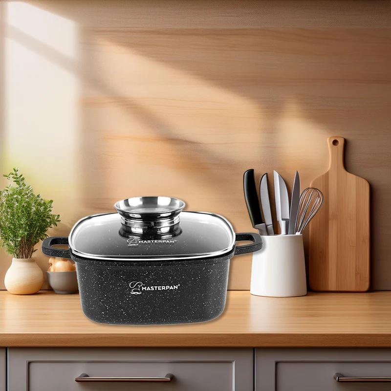 Η τετράγωνη κατσαρόλα MasterPan MP-2101 συνδυάζει επαγγελματική απόδοση, υγιεινό μαγείρεμα και κορυφαία αισθητική, για καθημερινά και απαιτητικά πιάτα χωρίς κόπο.
