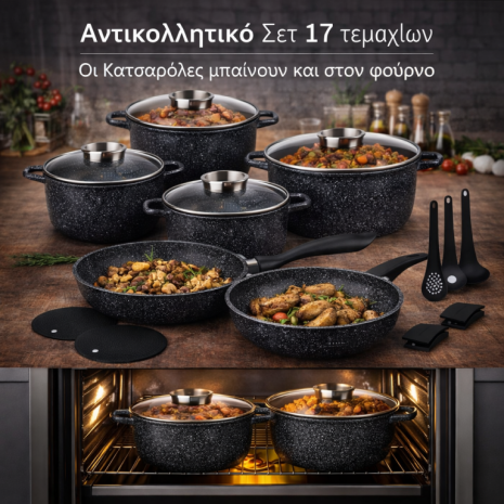 Το Σετ αντικολλητικά μαγειρικά σκεύη 17 τμχ EB-8181 αποτελεί μία επένδυση στην κουζίνα σας, που θα αποδείξει την αξία της στο χρόνο.