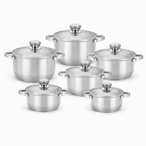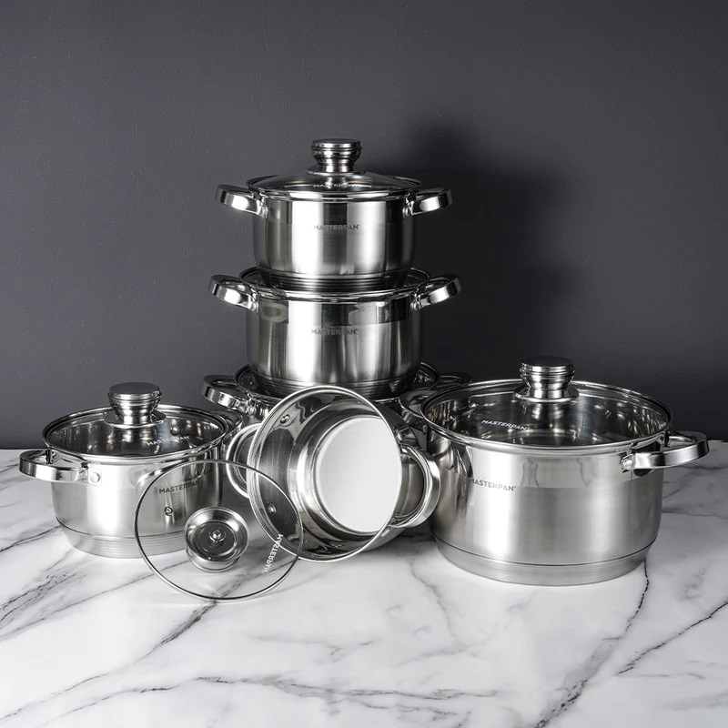 Masterpan, Σετ κατσαρόλες 12 τμχ από Ανοξείδωτο Ατσάλι, με πυρίμαχο καπάκι MP-5113