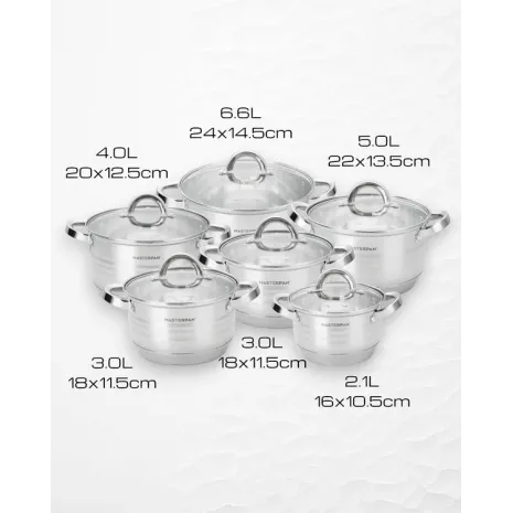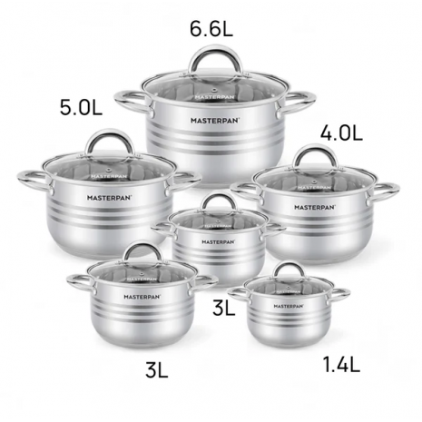 Masterpan – Σετ Κατσαρόλες 12 τμχ από Ανοξείδωτο Ατσάλι με Πυρίμαχα Καπάκια | MP-5120