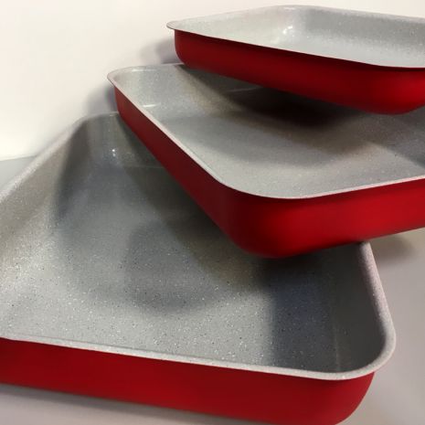 Σετ 3 Αντικολλητικά Ταψιά με Μαρμάρινη Επίστρωση HOME STYLE – Ορθογώνια 30, 35 & 40 cm