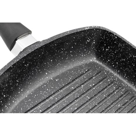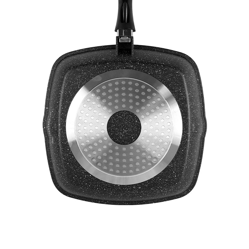 MasterPan Τηγάνι Γκριλ 28cm με Τριπλή Μαρμάρινη Επίστρωση & Γυάλινο Καπάκι Black Granite Line – MP-2146