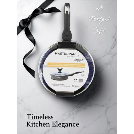 Masterpan, Τηγάνι βαθύ 26 x 6.3 cm Αντικολλητικό για Βαθύ Τηγάνισμα με Μαρμάρινη Επίστρωση και Γυάλινο Καπάκι MP-2375