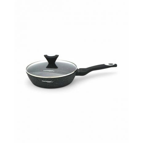 Masterpan, Τηγάνι 26 x 6.3 cm Αντικολλητικό για Βαθύ Τηγάνισμα με Μαρμάρινη Επίστρωση και Γυάλινο Καπάκι MP-2375