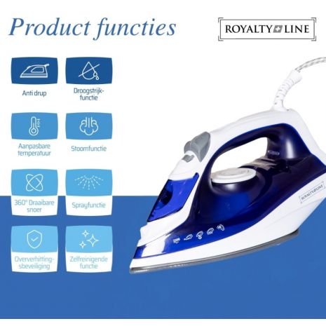 Σίδερο Ατμού με Αντικολλητική Πλάκα & Κάθετο Ατμό 2200w, Royalty Line DB-15413 Blue