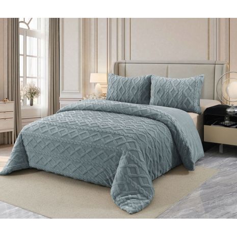 Υπέρδιπλο Ισοθερμικό Κουβερτοπάπλωμα με 2 Μαξιλαροθήκες Tufted Light Grey