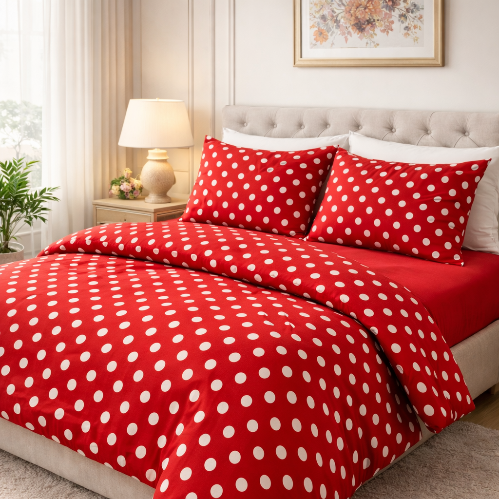 2 σεντόνια, 1 πουά και 1 μονόχρωμο, διαστάσεων 240×260 cm